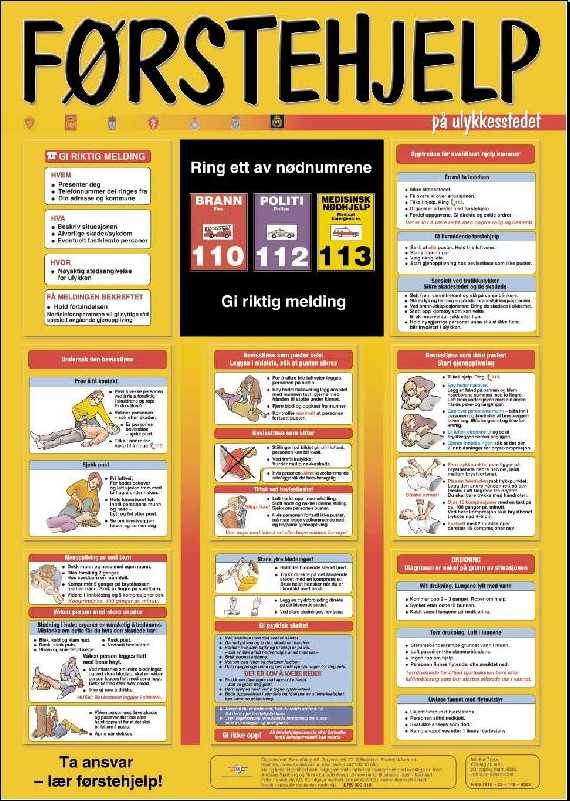 Førstehjelpsplakat i A-3 format (lakkert); 34 x 48 cm.
